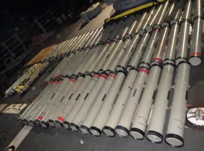 Demers detalló que en noviembre de 2019 y febrero de 2020, dos buques de guerra estadounidenses, el USS Forrest Sherman y el USS Normandy, mientras realizaban operaciones de seguridad marítima de rutina en el Mar Arábigo, interceptaron dos buques sin bandera. A bordo de ambos buques había grandes existencias de armas, incluidos 171 misiles antitanques guiados, ocho misiles tierra-aire y varios otros componentes de misiles. La investigación posterior reveló que el cargamento de los barcos era de fabricación iraní y compatible con los sistemas de armas iraníes conocidos. Un análisis adicional reveló que las armas eran de la Fuerza IRCG-Quds y estaban destinadas a grupos militantes en Yemen. El 20 de agosto de 2020, la División de Seguridad Nacional y la Oficina del Fiscal de los Estados Unidos para el Distrito de Columbia presentaron una denuncia en el Tribunal de Distrito de los Estados Unidos para confiscar las armas incautadas.
